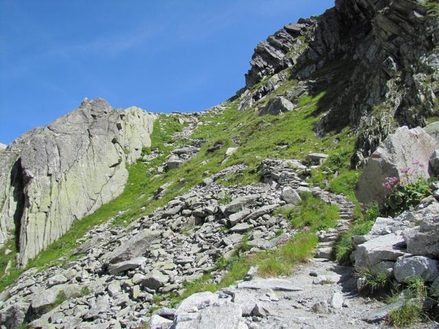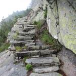 die schwierigste Passage der Wanderung. Hier ist der Weg zum Teil aus dem Fels gehauen