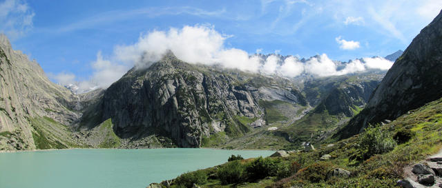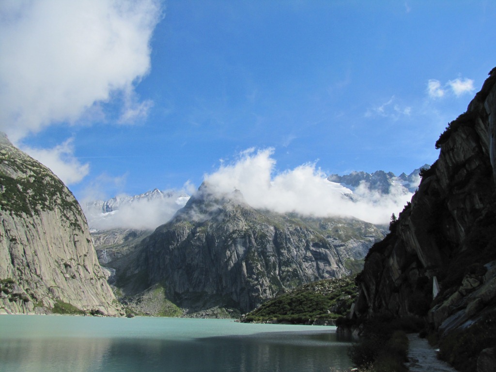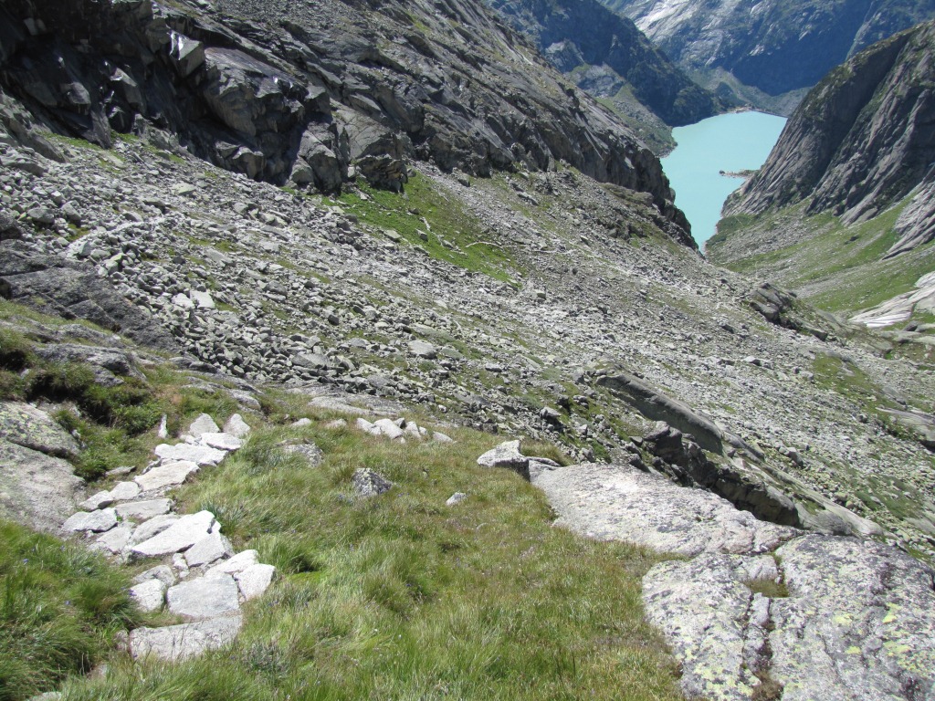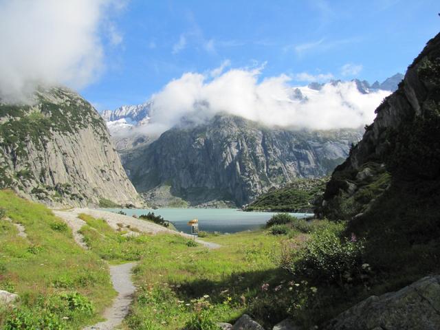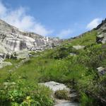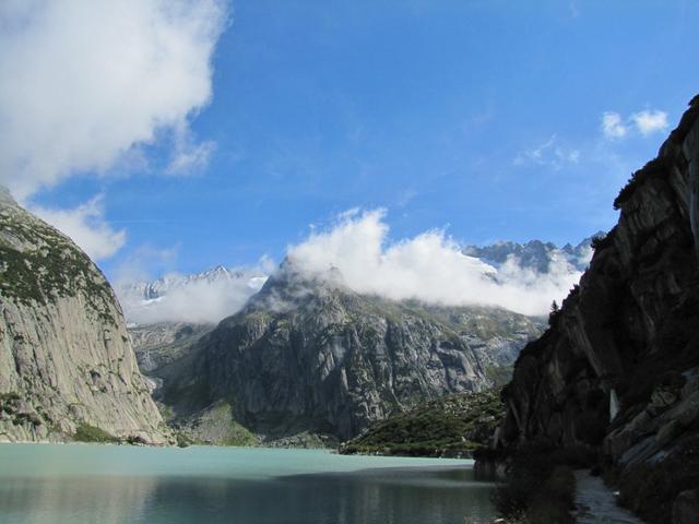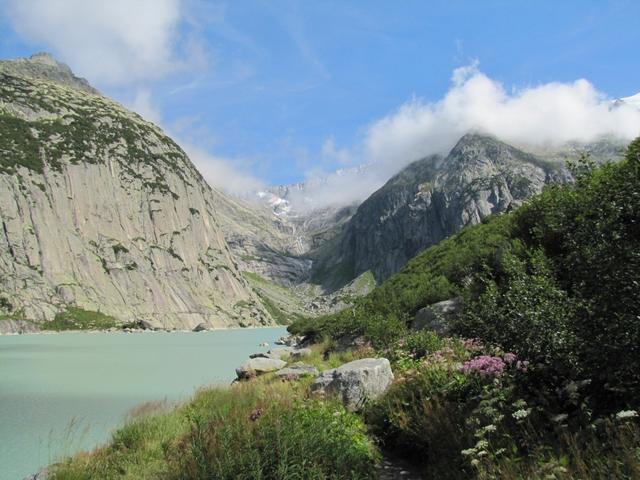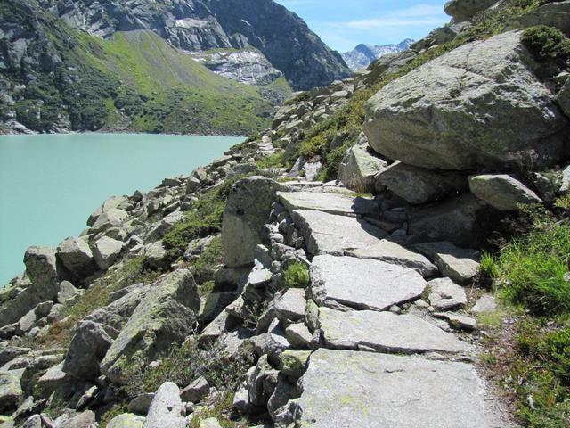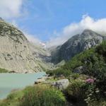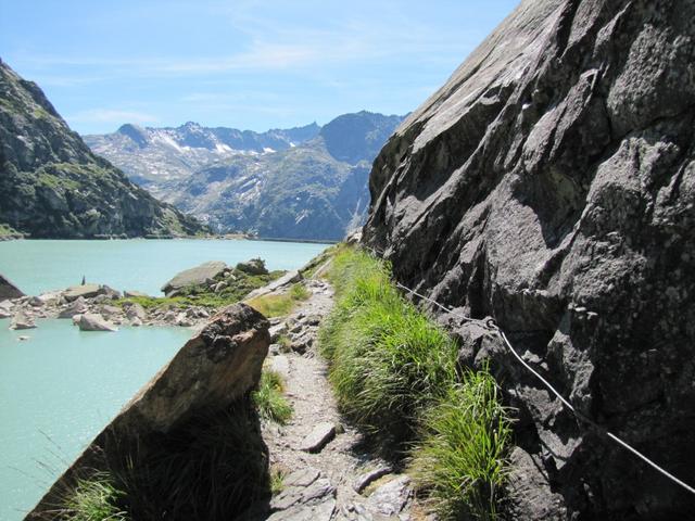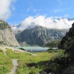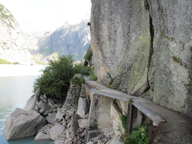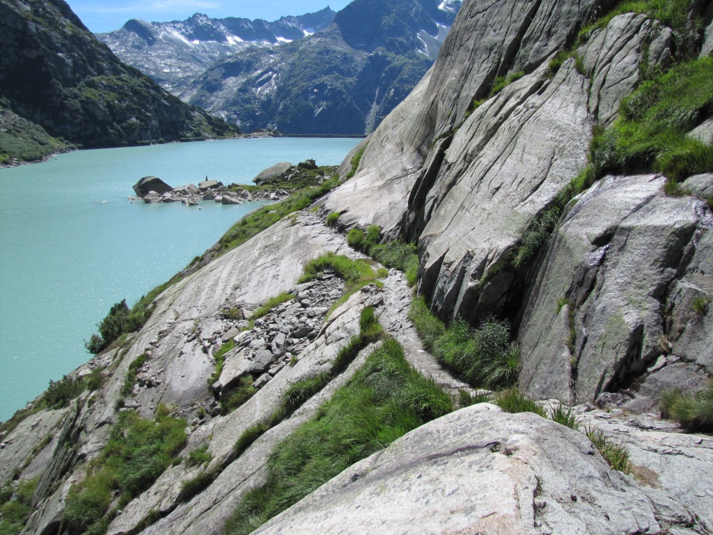 wir wandern nun auf der orographisch linken Seeseite entlang, Richtung Gelmerhütte