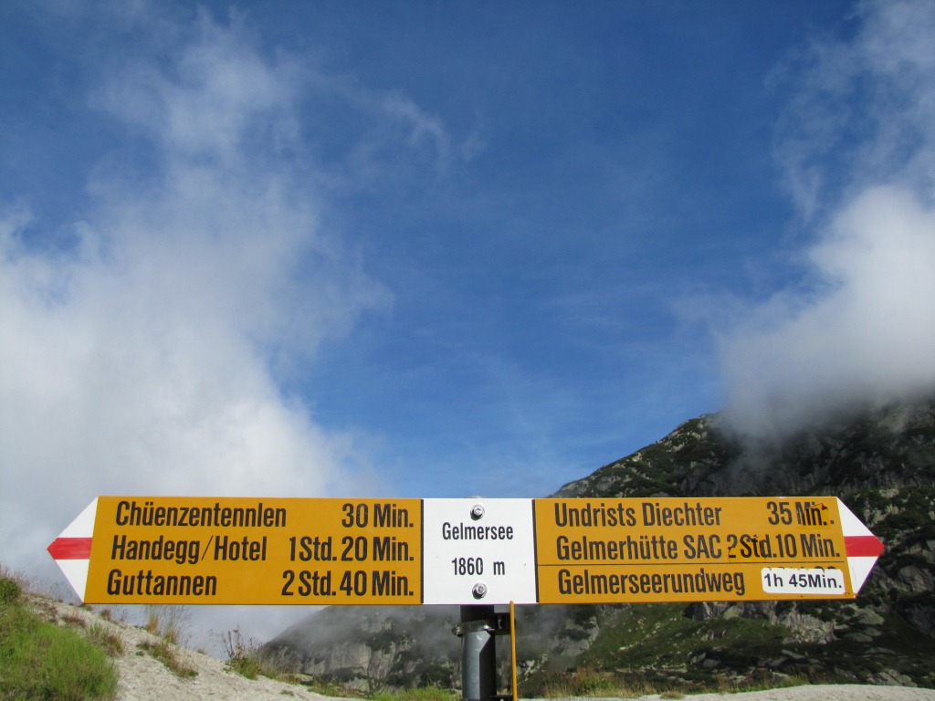 Wegweiser beim Gelmersee 1860 m.ü.M.