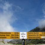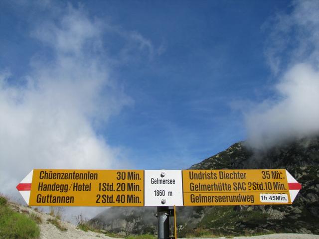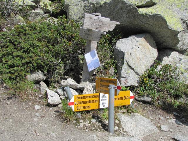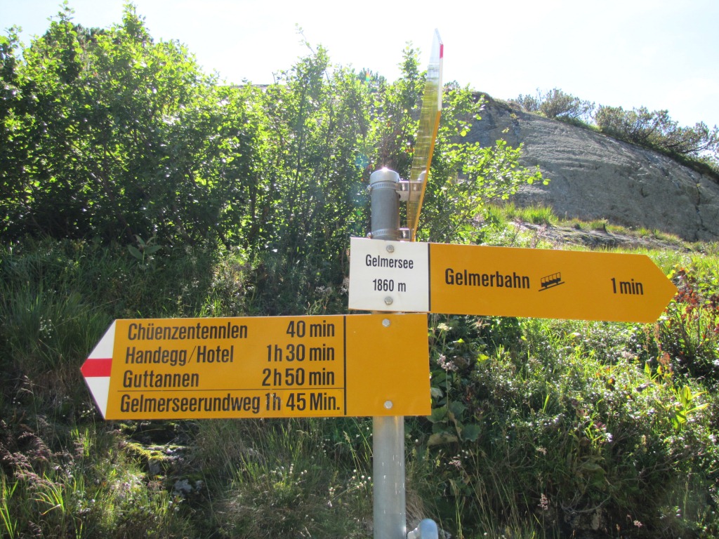 Wegweiser bei Chüenzentennlen 1596 m.ü.M. unser Ziel die Gelmerhütte
