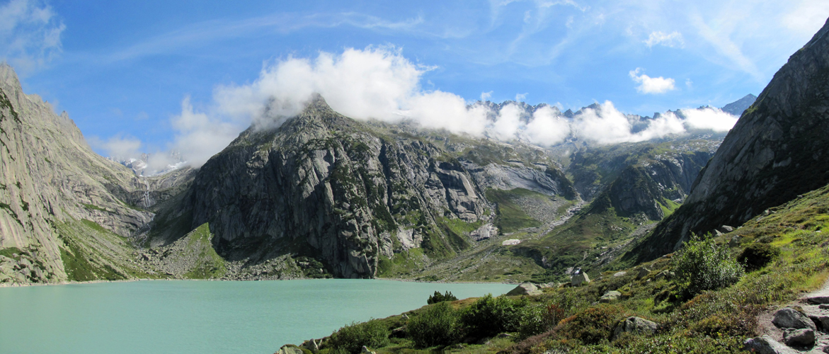 Breitbildfoto bei Mittlists-Diechter mit Blick Richtung Gelmerhörner
