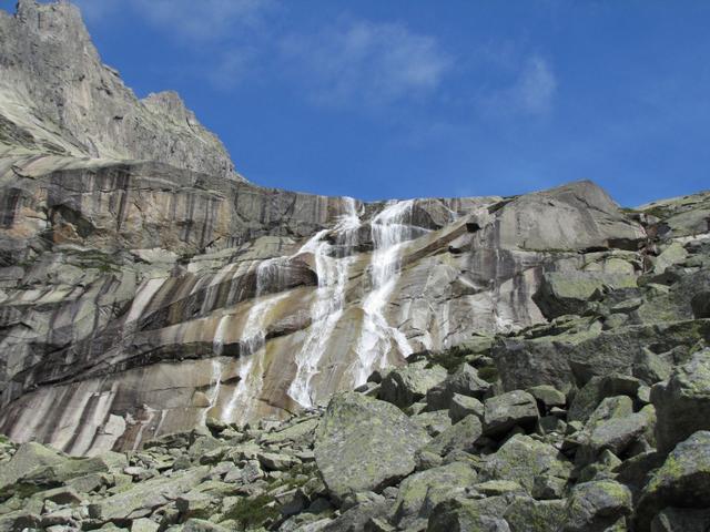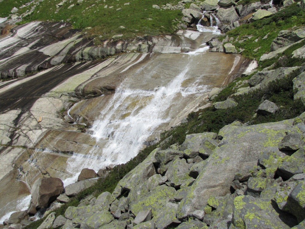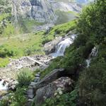 über zahlreiche Kaskaden fällt das Wasser des Diechterbaches abwärts zum Gelmersee