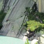 bei der Talstation der Gelmerbahn, überquerten wir über eine neu erstellte Hängebrücke die tiefe Schlucht der Aare