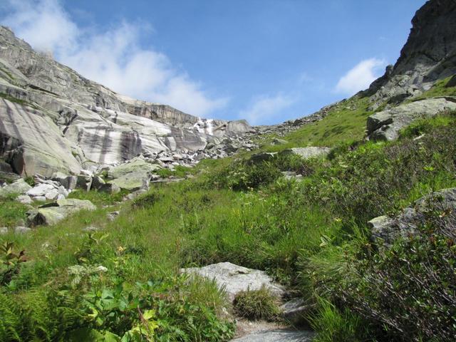 von hier aus, ist unser Ziel die Gelmerhütte schon sichtbar