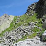 bei Undrists-Diechter 1854 m.ü.M. biegt der Weg rechts ab, Richtung Gelmerhütte
