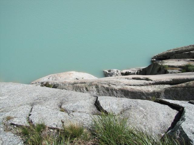 unter uns der Gelmersee mit seiner schönen blauen Farbe