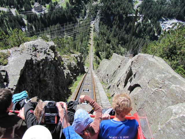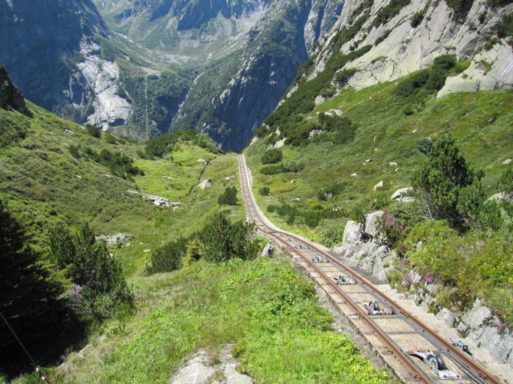 die Standseilbahn zum Gelmersee ist mit 106% die steilste ihrer Art im ganzen Alpenraum