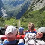 den gleichen Weg wie wir gekommen sind, geht es nun wieder abwärts