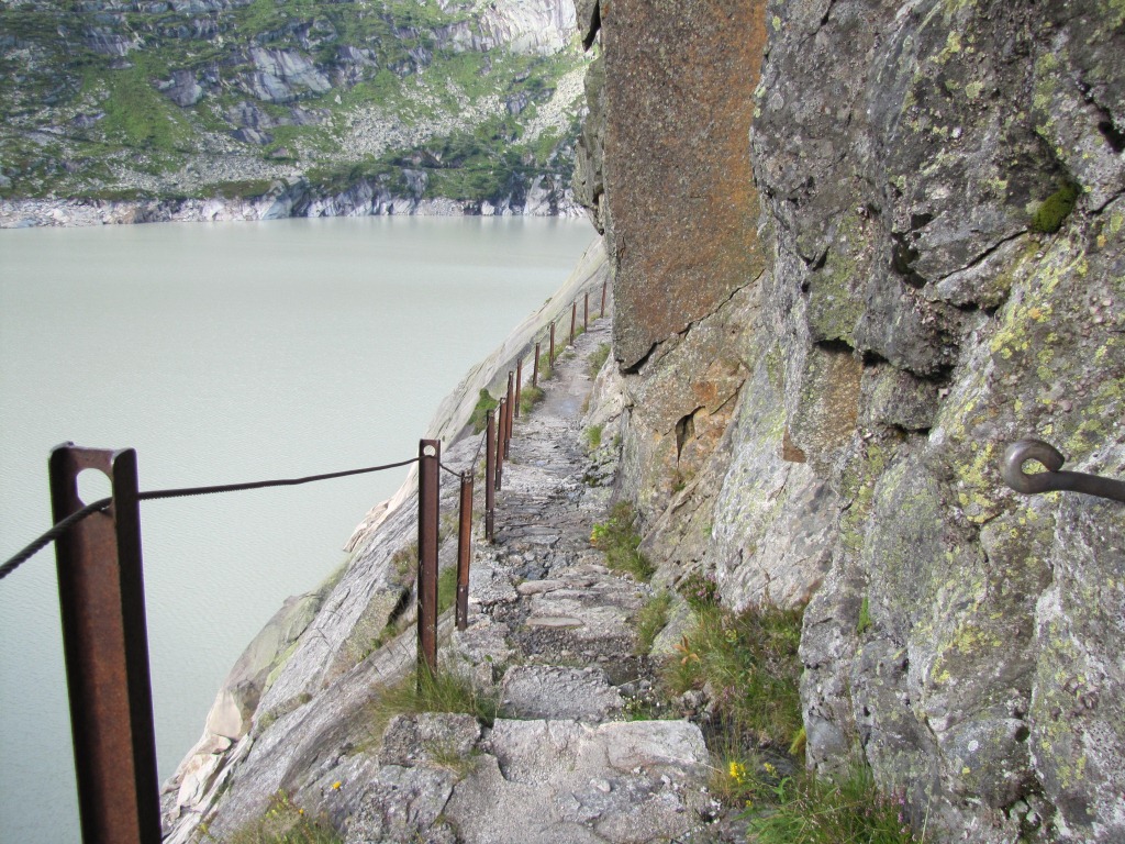 aus dem Grimselgranit geschlagen: der Weg an der Spittellamm, oberhalb der Staumauer Datum 31.10.2011