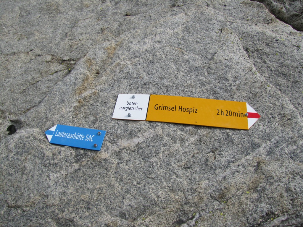 Wegweiser auf dem Grimsel Hospitz 1980 m.ü.M. Datum 29.10.2011