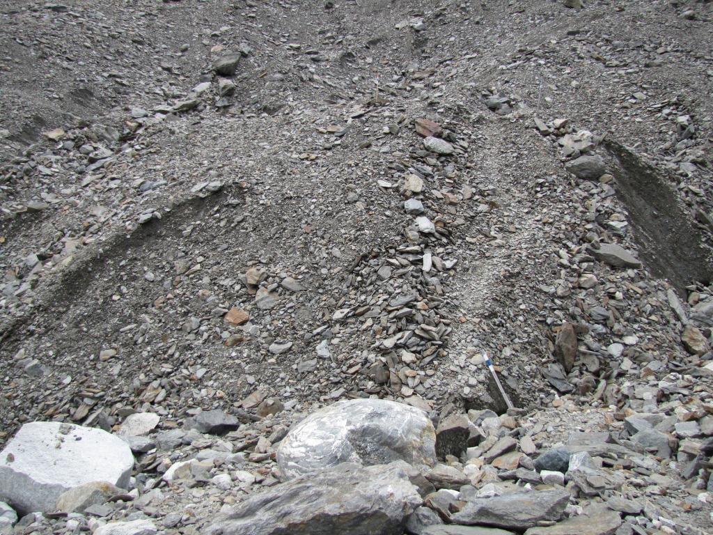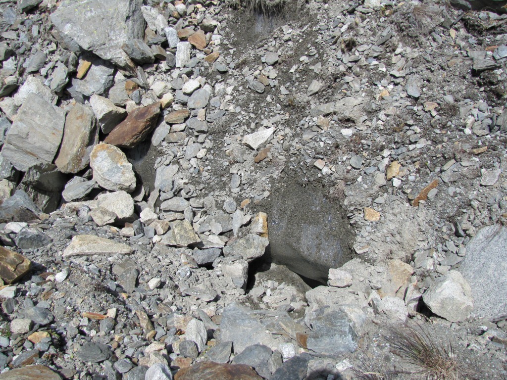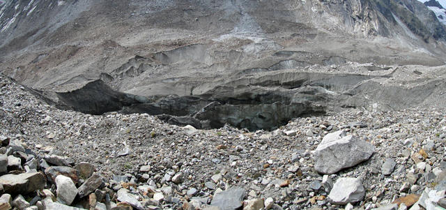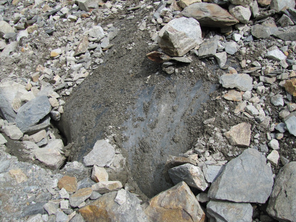 neben oder unter uns schaut Eis hervor. Man hört das Gletscherwasser rauschen Datum 31.10.2011