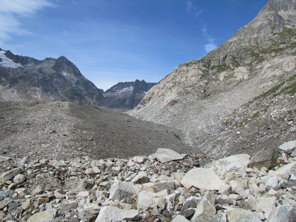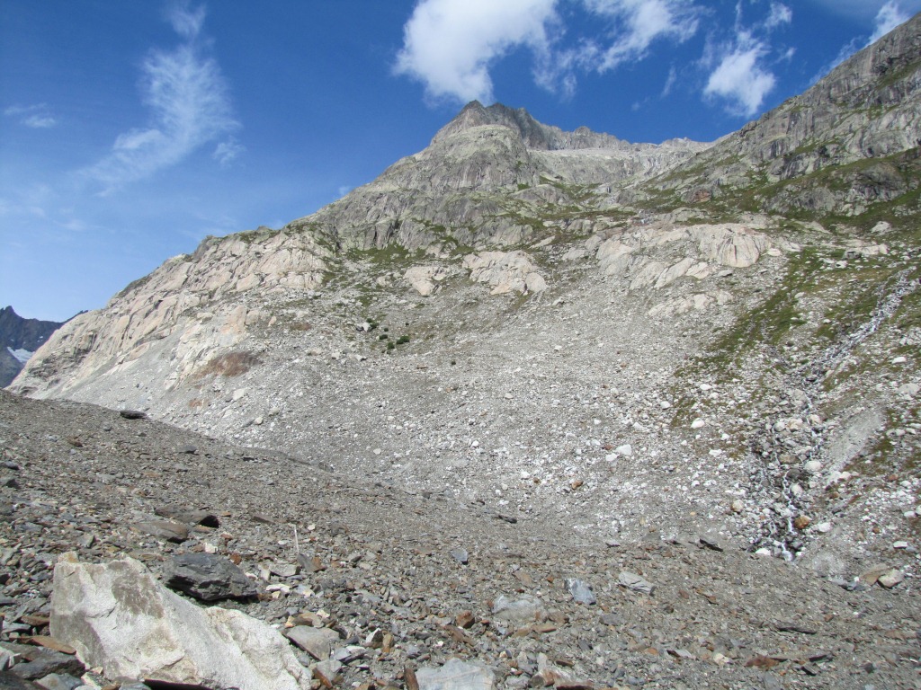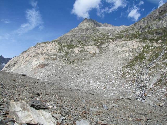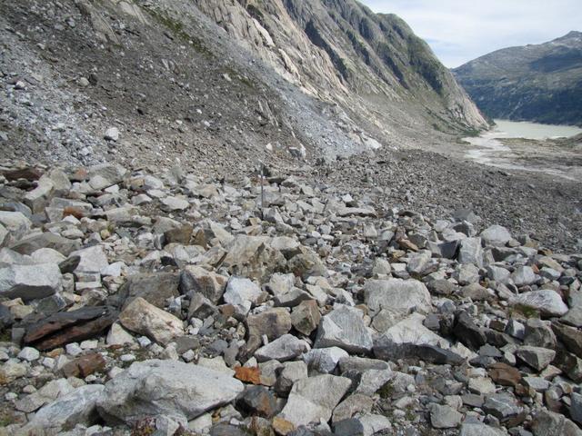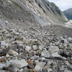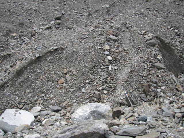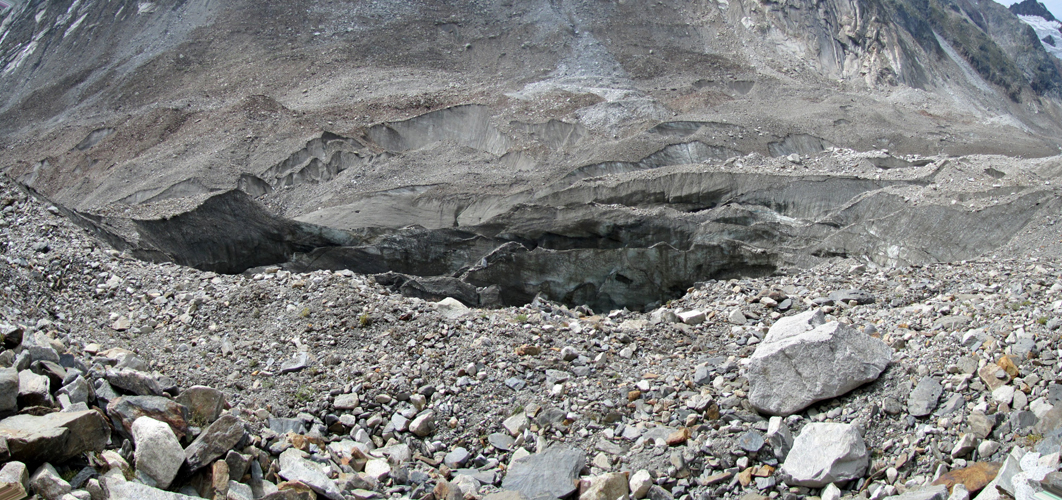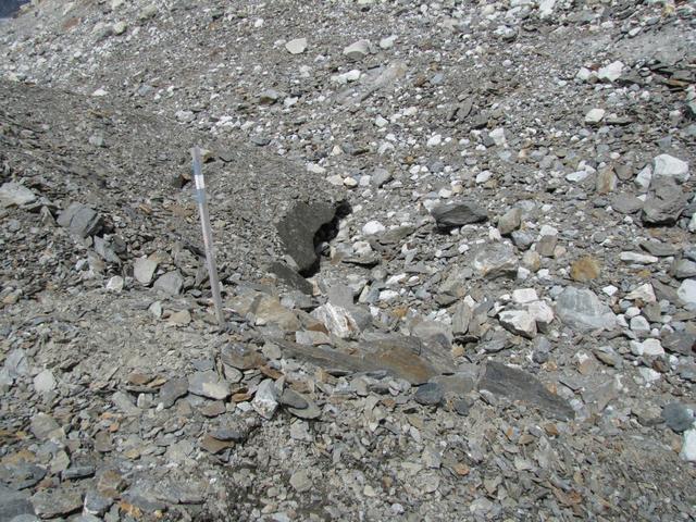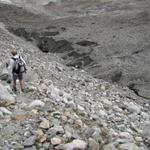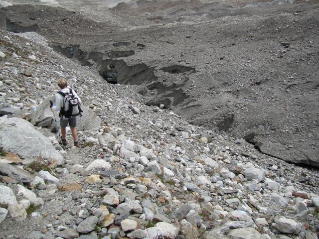 rechts vom Gletschermaul betritt man nun das durch Schutt verborgene Eis Datum 31.10.2011