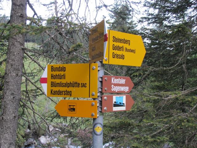 Wegweiser bei Bundsteg 1500 m.ü.M. unser nächstes Ziel die Bundalp