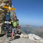 wir haben das Hohtürli erreicht. Wegweiser auf 2778 m.ü.M.