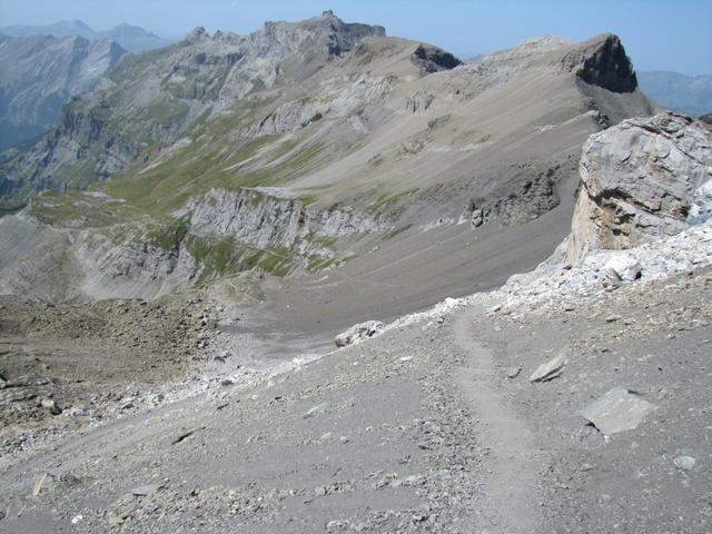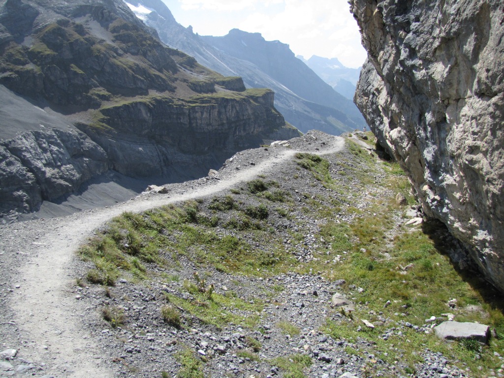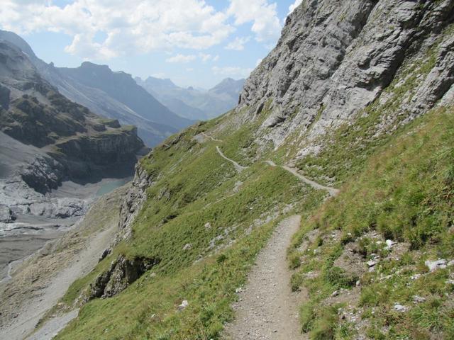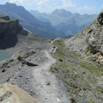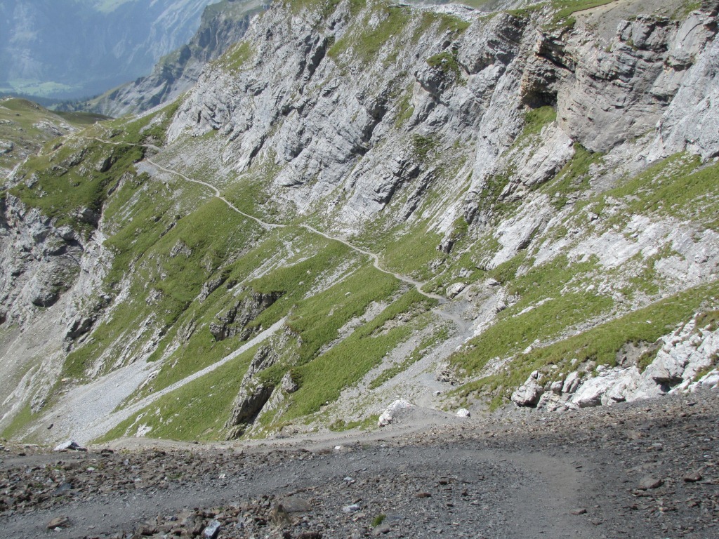 Blick zurück zum Hohtürli und der Blüemlisalphütte. Gut ersichtlich der Bergweg