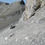 Blick zurück zur Schlüsselstelle der ganzen Wanderung. Der Weg ist gut gesichert.