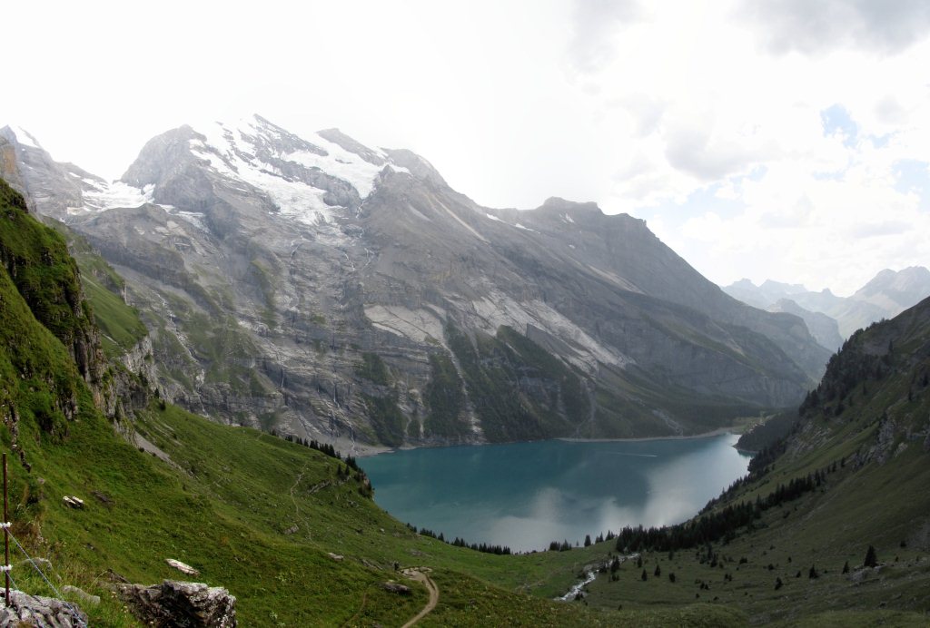 Plötzlich taucht vor uns der sehr schöne Oeschinensee auf