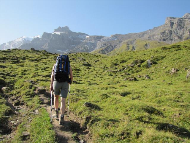 Blick zur Wildi Frau und dem Hohtürli. Die Blüemlisalphütte ist auch schon ersichtlich