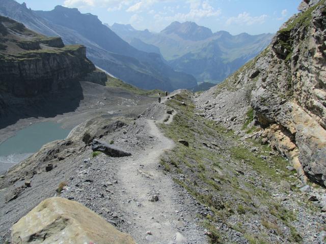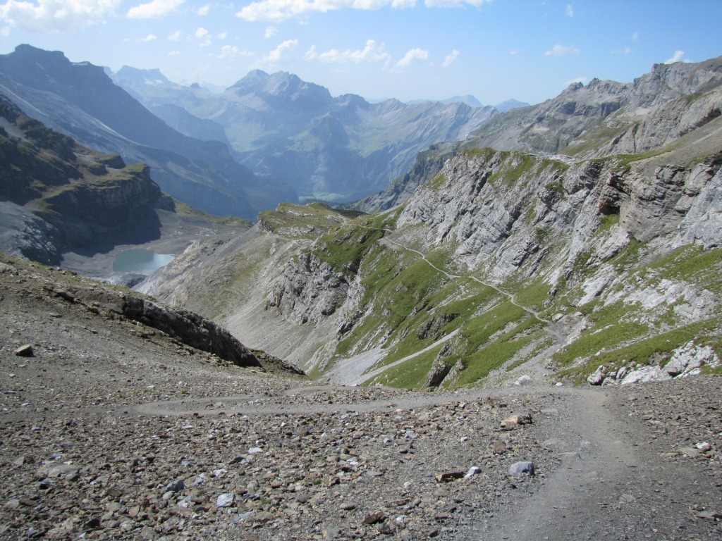 Blick zurück zum Hohtürli und der Blüemlisalphütte. Gut ersichtlich der Bergweg