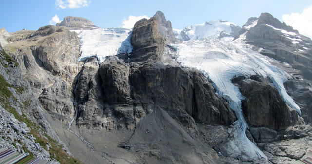 Breitbildfoto mit Blick zu dem Hängegletscher der Blüemlisalp