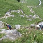 an Moränenhügel entlang führt uns der Weg weiter abwärts Richtung Oberbärgli