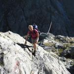 Mäusi bei der Felswand. Rassig geht es mit Hilfe der Ketten abwärts