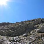 der Weg führt nun nur noch über Geröll und Schutt