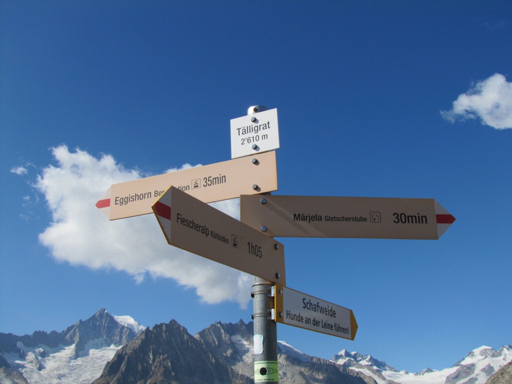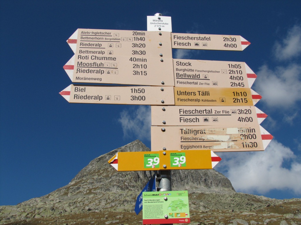Wegweiser beim Märjelensee 2373 m.ü.M. Datum 16.01.2012