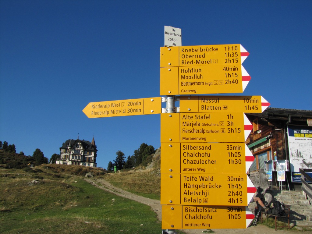 Wegweiser auf der Riederfurka 2065 m.ü.M. Datum 16.01.2012