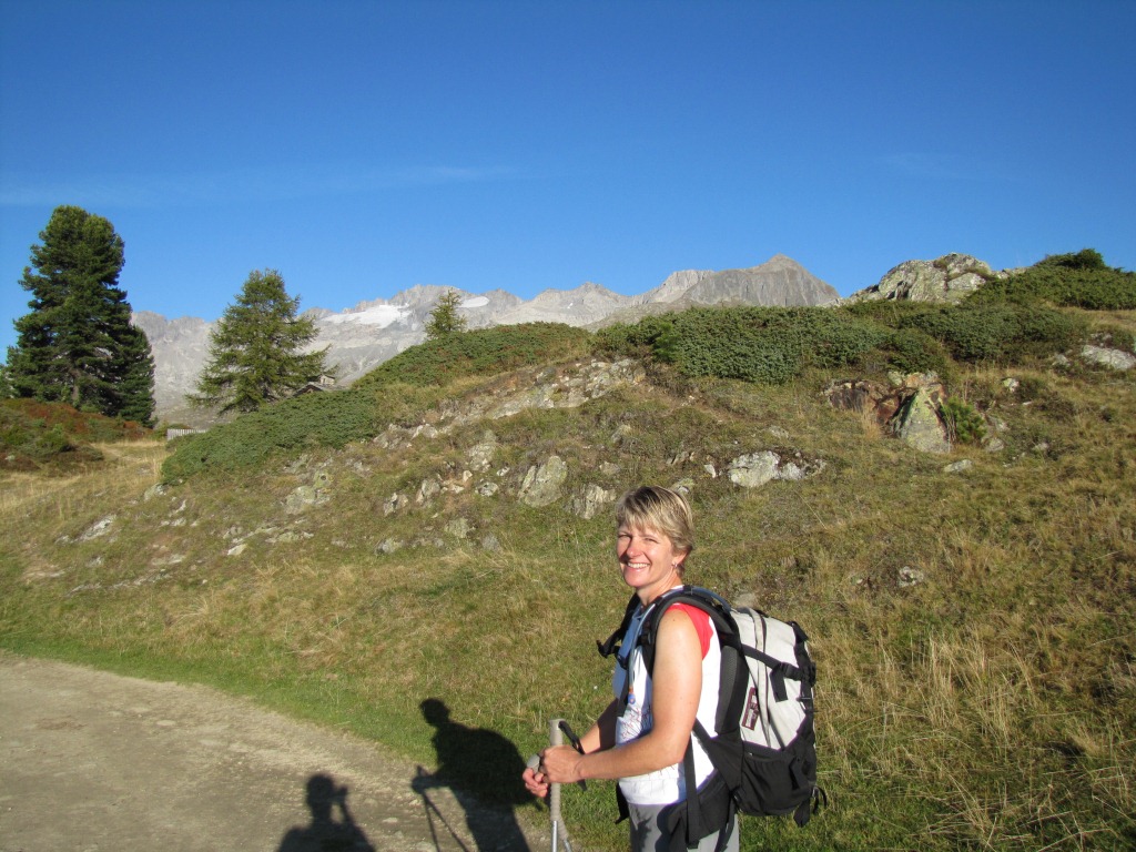 Erinnerungsfoto aufgenommen bei Chatzulecher 2010 m.ü.M. am Horizont der Aletschgletscher mit den den Walliser Fiescherhörner Datum 08.04.2015