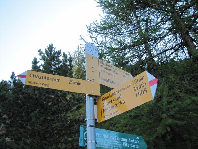 Wegweiser bei Punkt 1990 m.ü.M. auf dem Weg in den Aletschwald Datum 16.01.2012