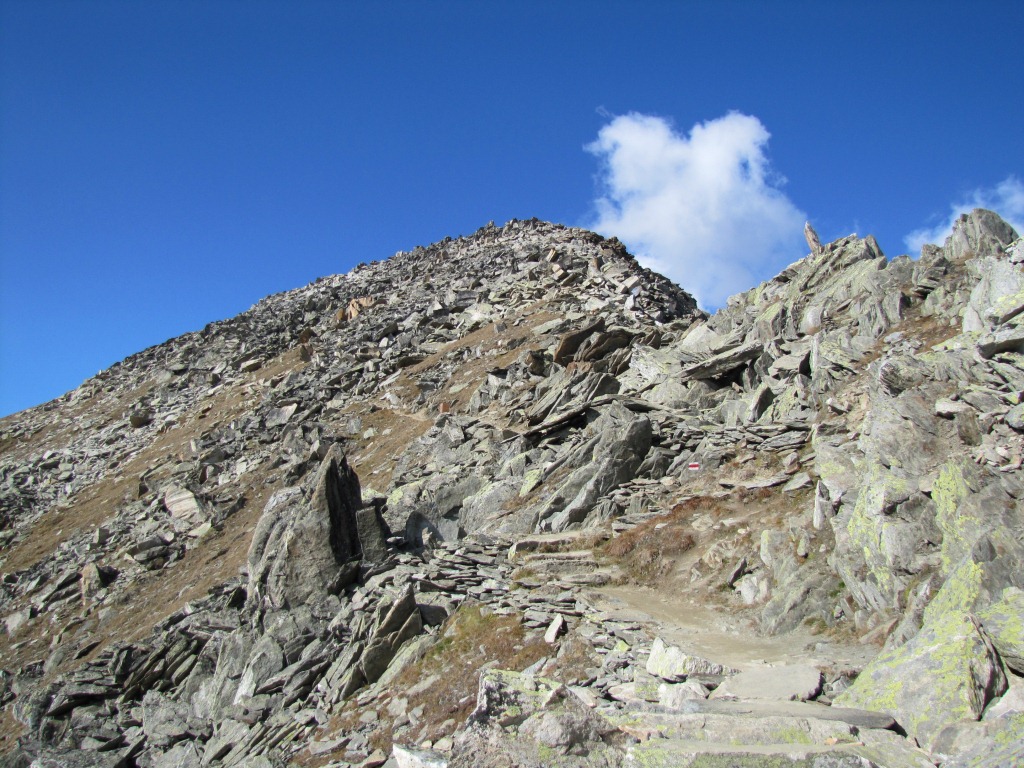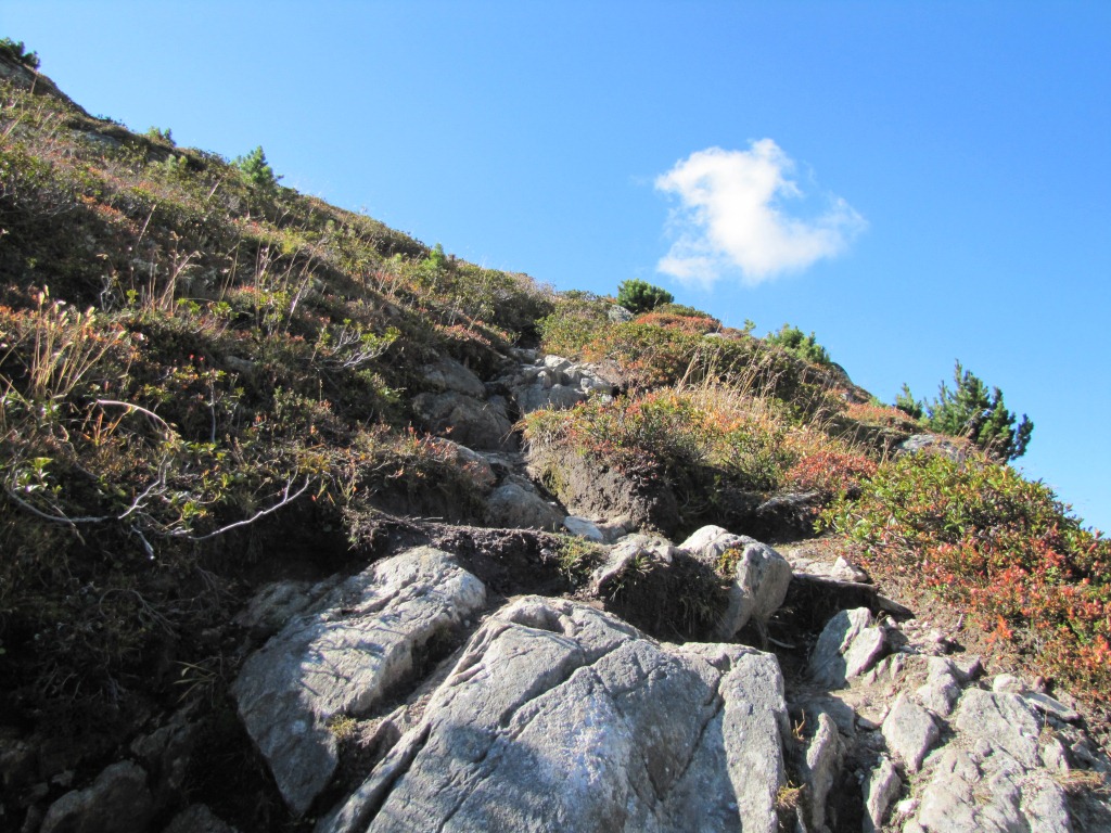 beim Wegweiser Kreuzung 2623 m.ü.M. führt der Weg steil hinauf Datum 17.01.2012