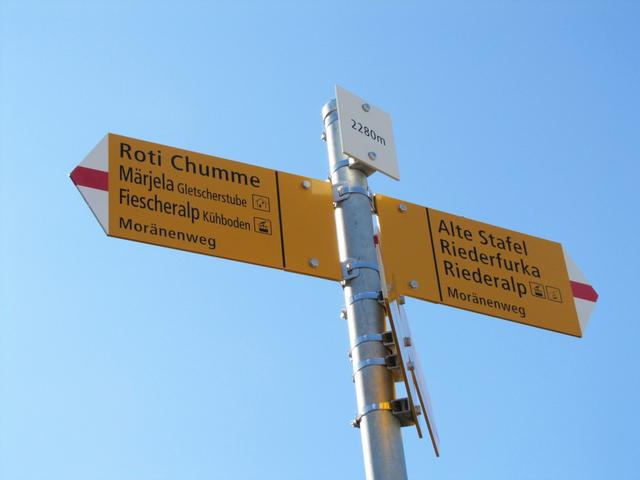 Wegweiser bei Punkt 2280 m.ü.M. jetzt geht es alles auf dem Höhenweg entlang zur Roti Chumme Datum 16.01.2012