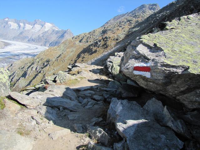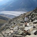 über Geröll und Blockschutt führt uns der Weg nun aufwärts zur Bergstation Eggishorn Datum 17.01.2012