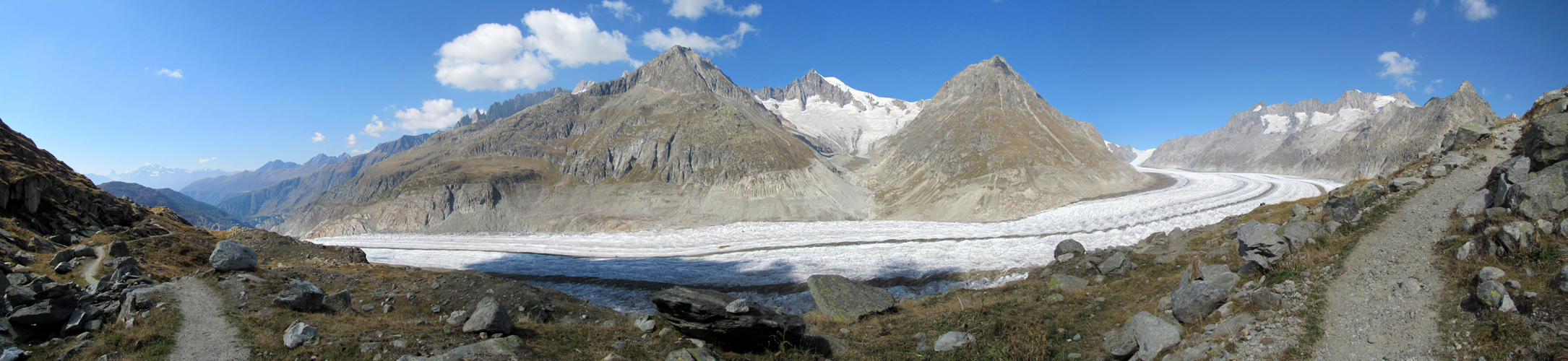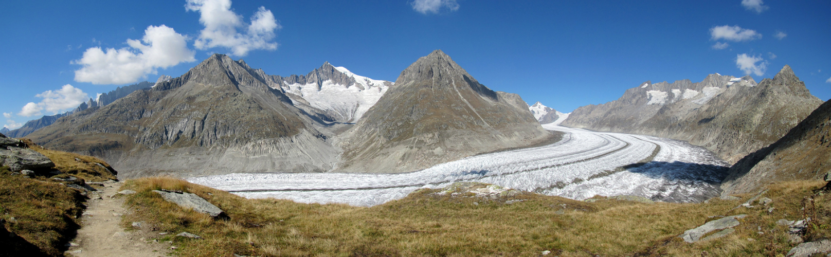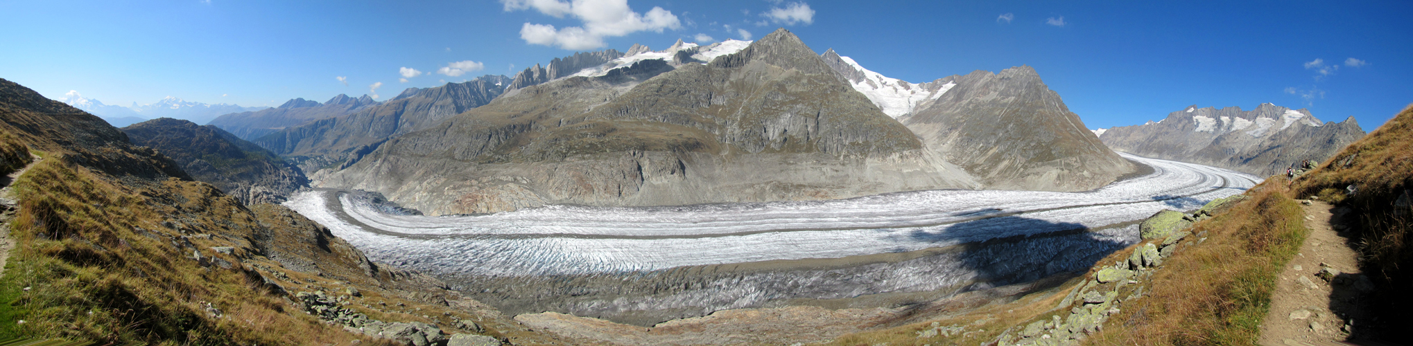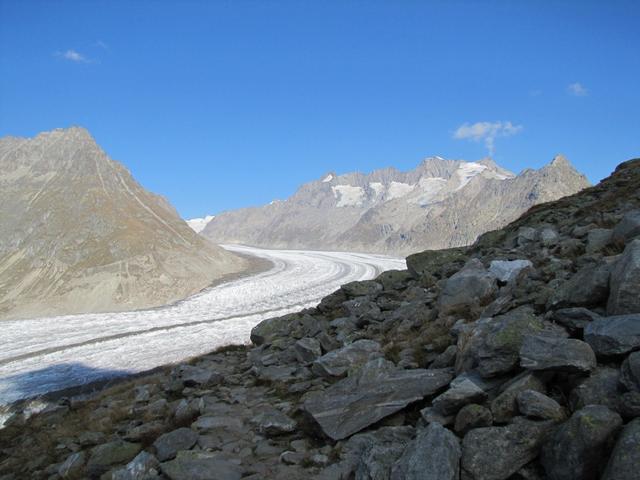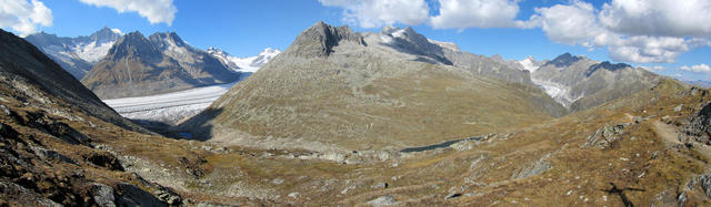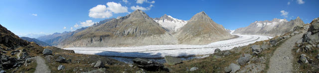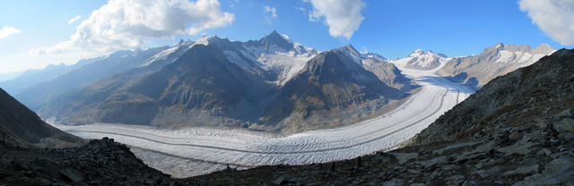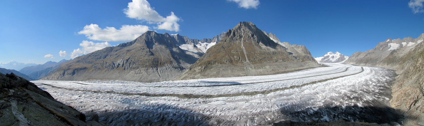 sehr schönes Breitbildfoto vom ganzen Aletschgletscher. Mit 23 Km. der grösste Eisstrom der Alpen Datum 07.02.2017