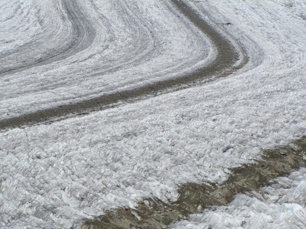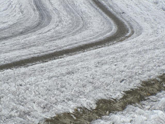 wie ein riesiger Teppich liegt er da, gesäumt von den schwarzen Streifen zweier Mittelmoränen Datum 16.01.2012