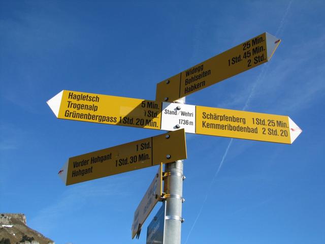 Wegweiser bei der Wegkreuzung Stand 1738 m.ü.M. nun beginnt der Aufstieg auf den Hohgant