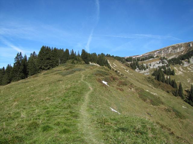 wir verlassen den Gipfel und wandern nun zwischen der Hohgant und dem Furggengütsch abwärts