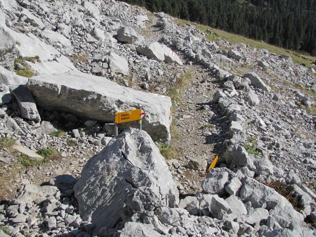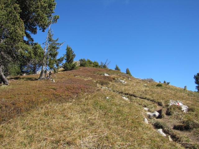hier biegt nun der Bergpfad rechts ab