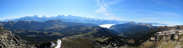 schönes Breitbildfoto von Punkt 2135 m.ü.M. aus gesehen mit Blick ins Berner Oberland