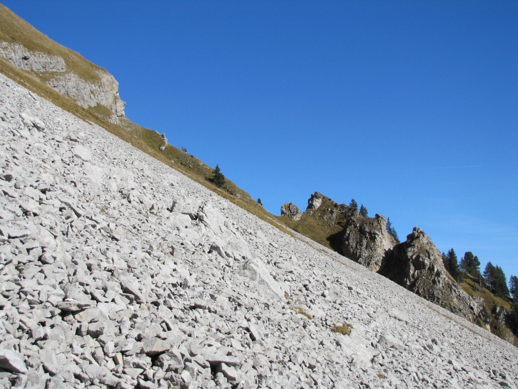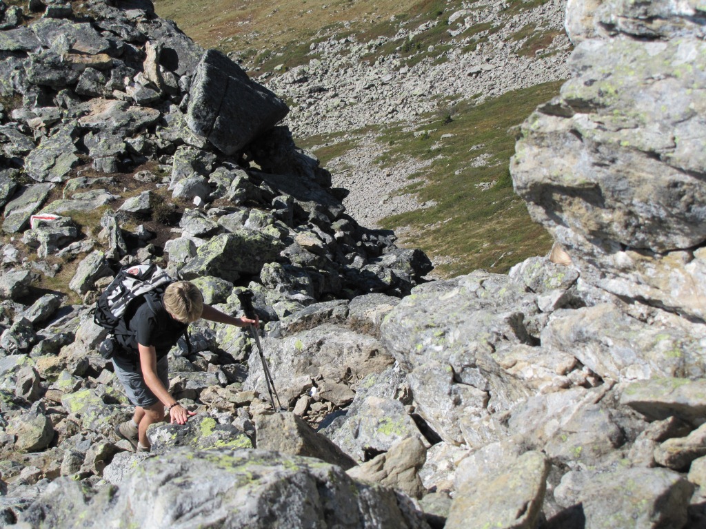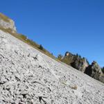 über Geröll und Schotter führt der Weg weiterhin steil abwärts
