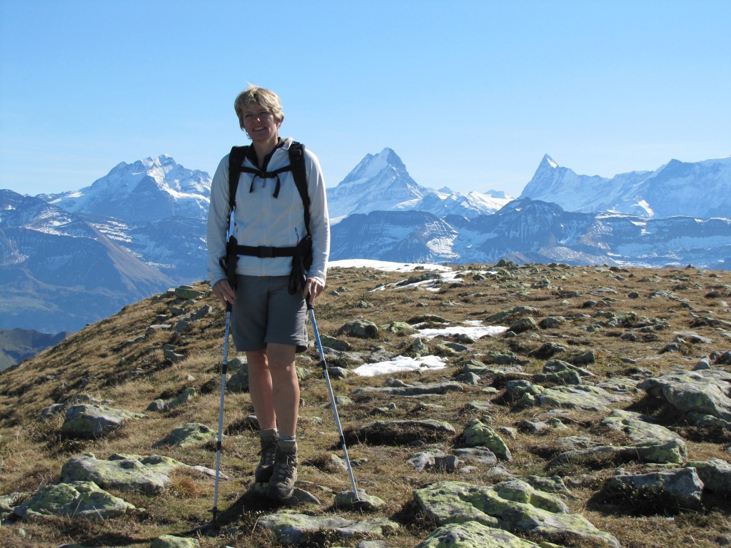 Mäusi auf der Hohgant. Im Hintergrund Wetterhorn, Schreckhorn und Finsteraarhorn