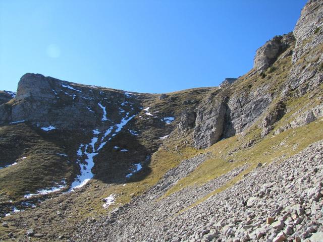 Foto schräg aufgenommen? Nein, so steil ist hier der Hang am Fusse des Furggengütsch