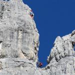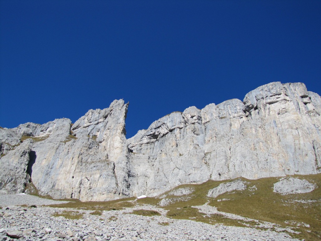 die schöne weiss-graue Kalkwand des Furggengütsch. Fast hat man das Gefühl man sei in den Dolomiten