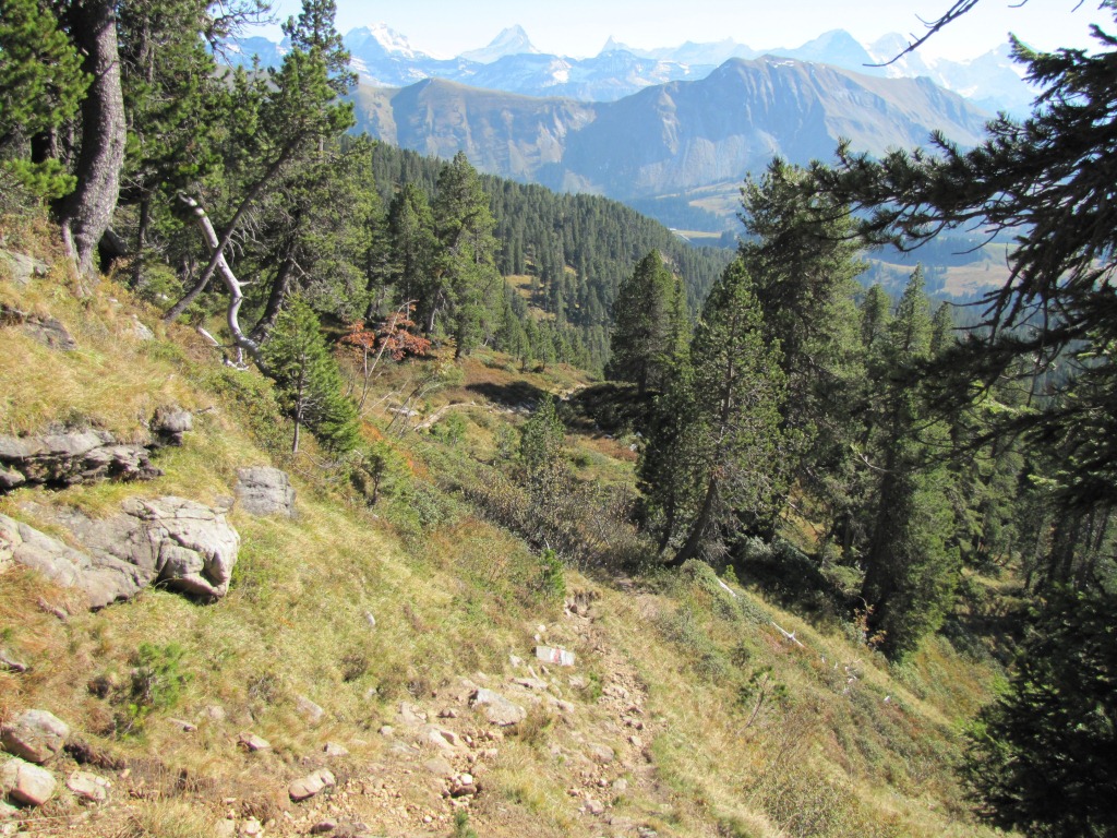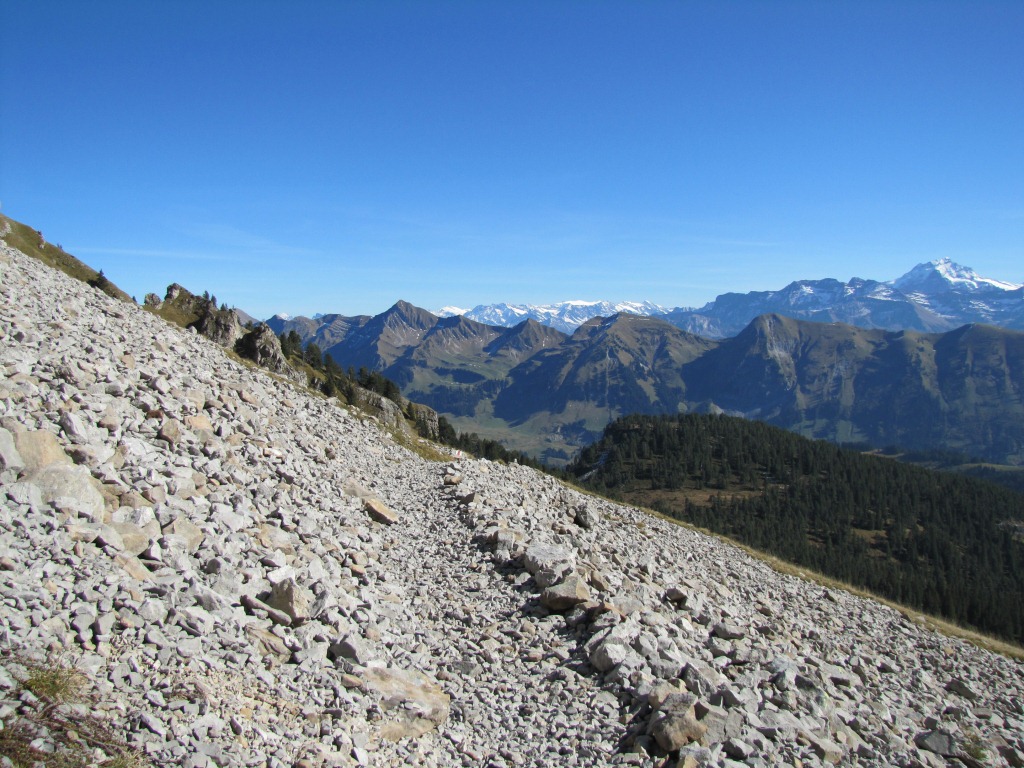 bei Punkt 1693 m.ü.M. biegt der Wanderweg links ab. Gut ersichtlich am Horizont der Hohgant