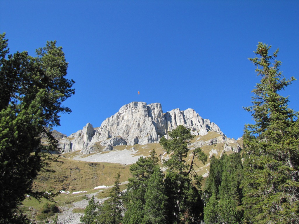 Blick nach oben zur Hohgant. Von dort oben sind wir runtergelaufen