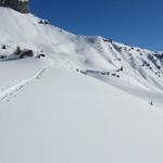auf dem breiten Grat entlang, geht es abwärts Richtung Fleschsee