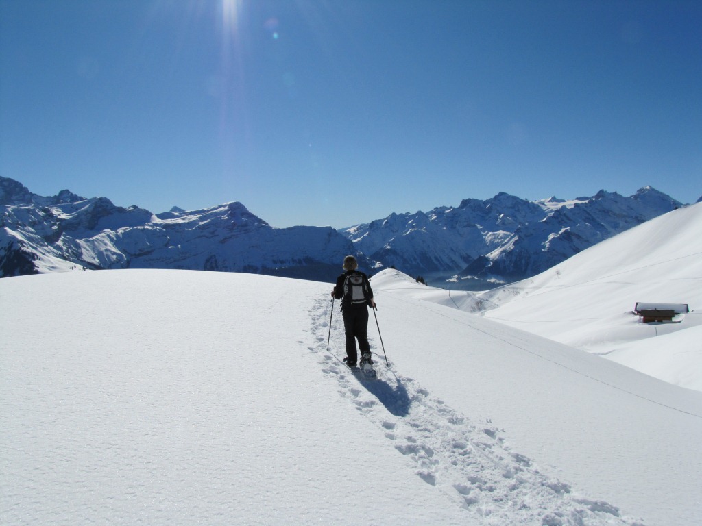es gibt nichts schöneres als mit Schneeschuhen einen Hang abwärts zu gleiten