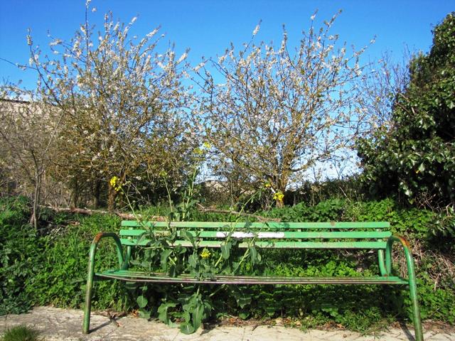 Parkbank in Espinosa. Hier ist schon lange niemand mehr hingesessen