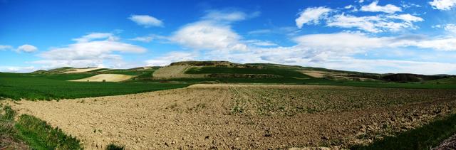 Breitbildfoto von den Montes de Oca. Oca = Gans. Räuber und Banditen lauerten hier früher auf die Pilger
